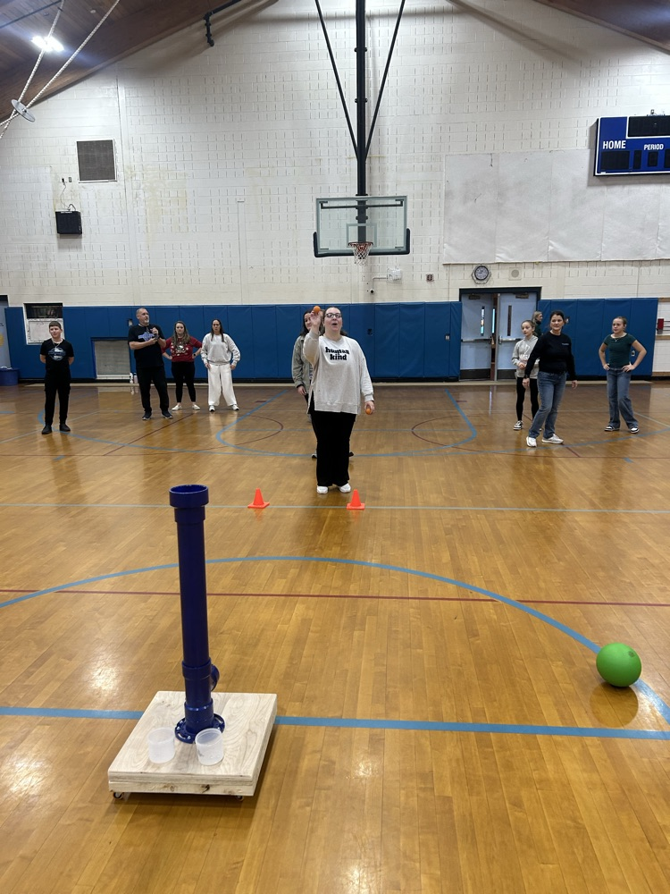 Coach B. Created "The Impossible Shot" which two students have proven possible! Staff were invited to play during halftime of Jedi. Congrats to Ms. Van Dyne for being the only faculty member to make the impossible possible! Great time today with the students and staff!!